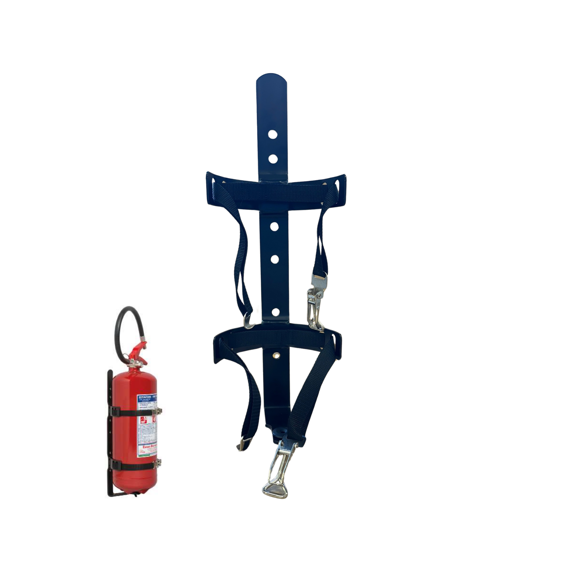 Svartlakkert stålstøtte beregnet for montering på båter.